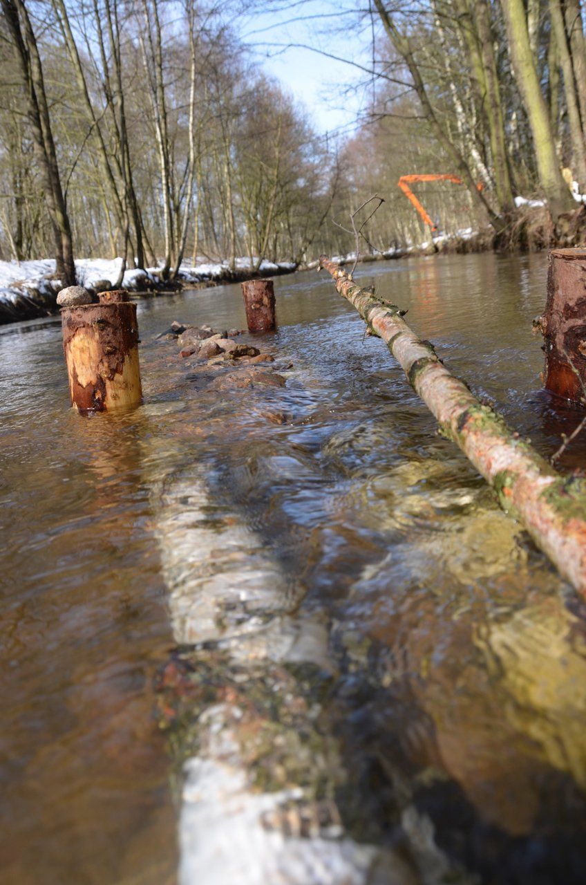 durch den Einbau von strömungsumlenkenden Steinbuhnen restrukturiert